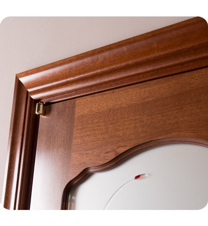 The frame is made from natural wood filling with a rubber sealed door stops, and self-regulating molding to enable easy installation. The thickness of the door jamb is 3 7/8”, which is adjustable to 4 7/8” using the L-Casing molding. Casings are applied around the door jamb, which are the same finish as the door.