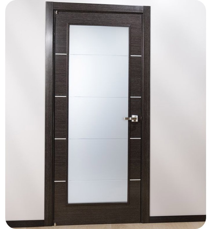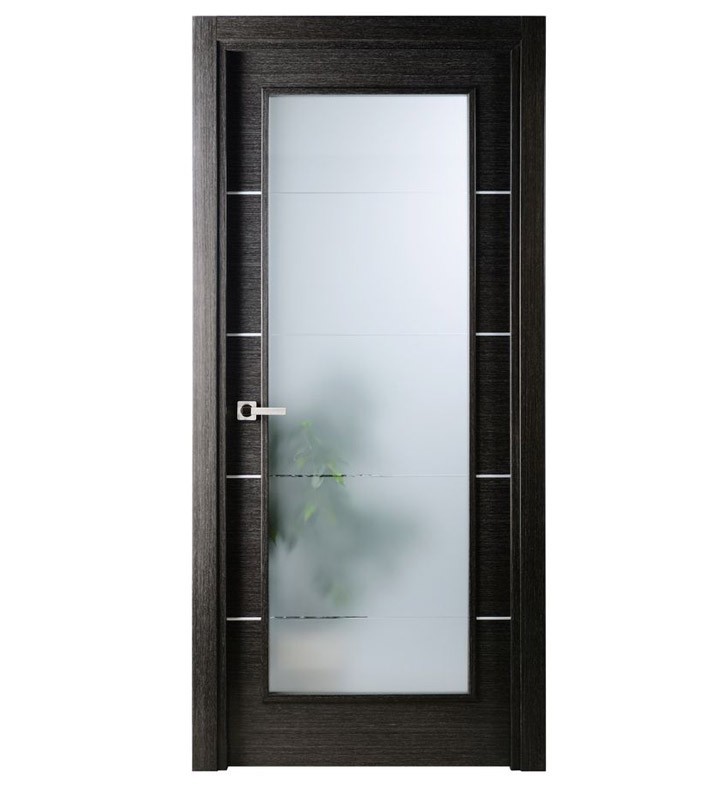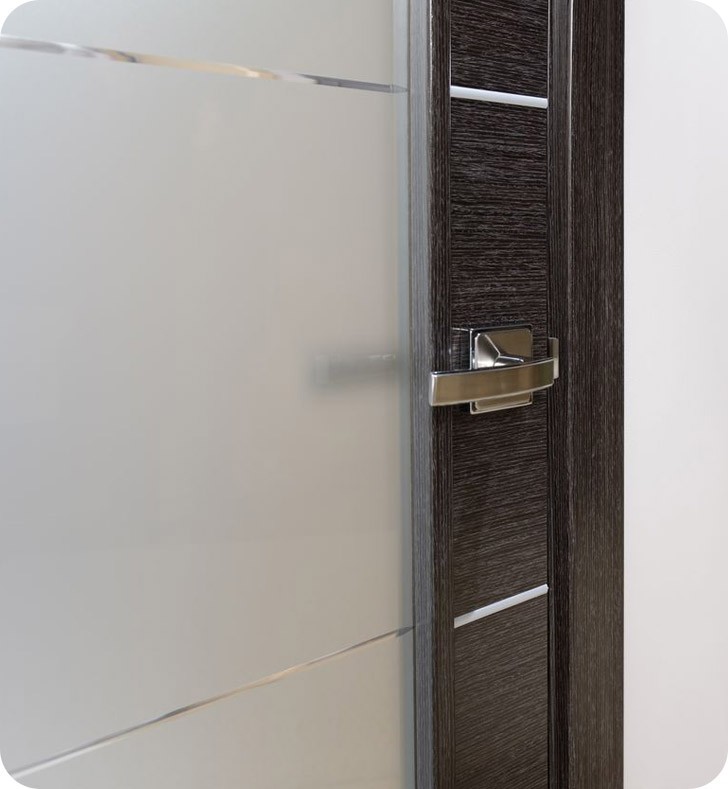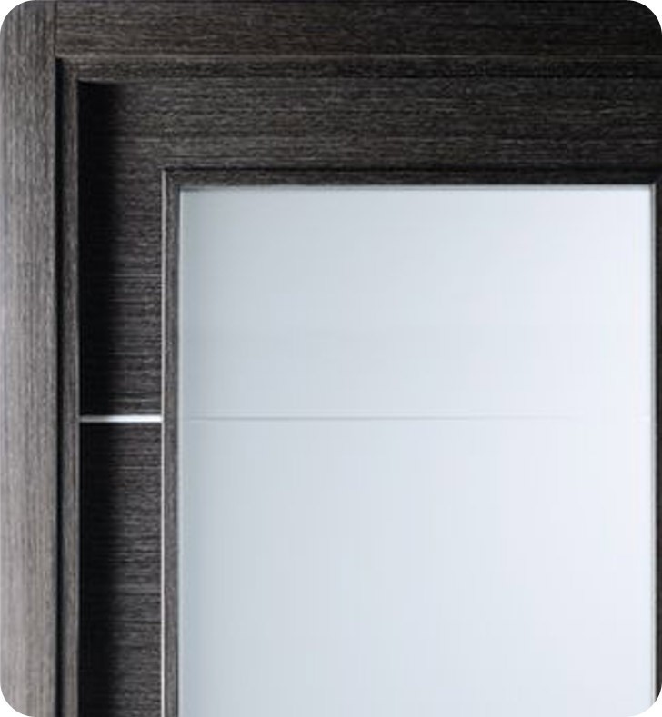 Arazzinni AV-BA Avanti Vetro Interior Door in a Black Apricot Finish with Silver Strips and Frosted Glass
