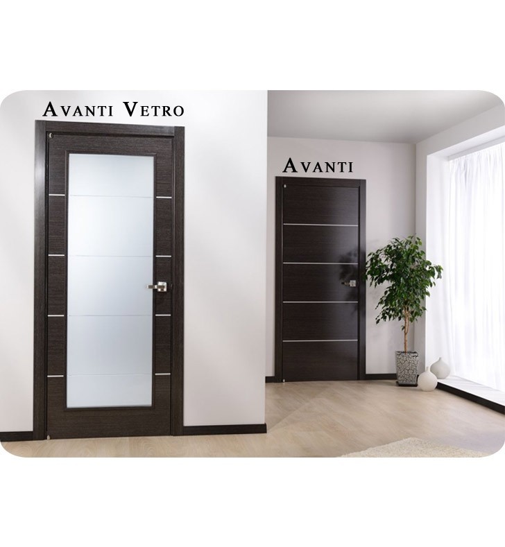 The center of the door contains a strong tempered glass piece mounted on raised moldings, and there is enough thickness around the border of the glass for the character of the Avanti Vetro door horizontal design to be seen.