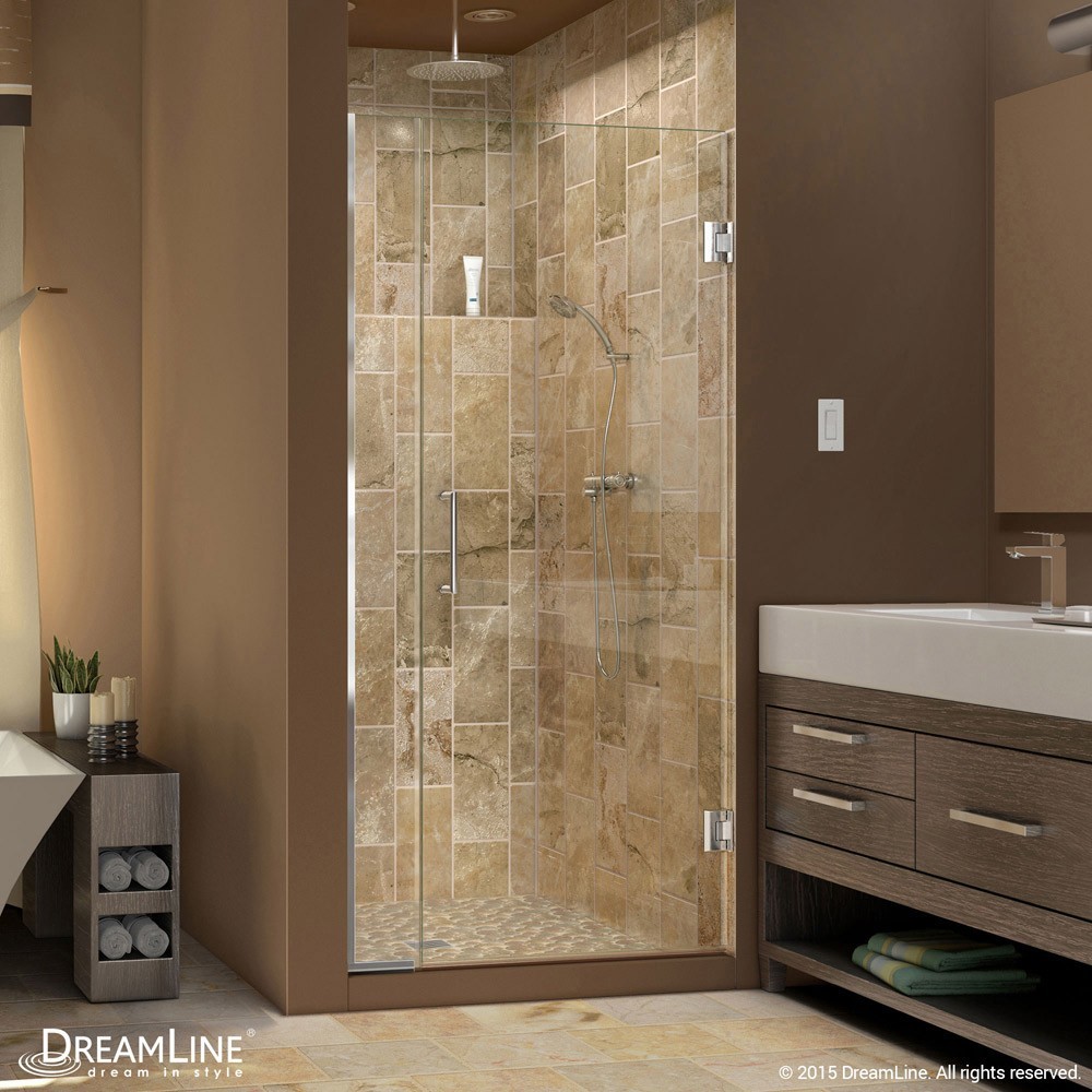 The UNIDOOR PLUS shower door from DreamLine is perfectly designed to accommodate todays trends. It has a classic frameless design with three hardware finish options helping it enhance any bathroom style on any budget. With equal appeal and versatility as the original UNIDOOR, the UNIDOOR PLUS shower door adds an extra splash of class with an anodized aluminum U-channel. The UNIDOOR PLUS shower door combines premium 3/8 in. thick ANSI certified tempered glass with a sleek frameless design for the look of custom glass at an unparalleled value. With clean lines, modern accents, an upscale look and a choice of clear or frosted (band) privacy glass, the UNIDOOR PLUS shower door adds a touch of timeless style to any bathroom space. DreamLine has the ultimate solution for your shower project.