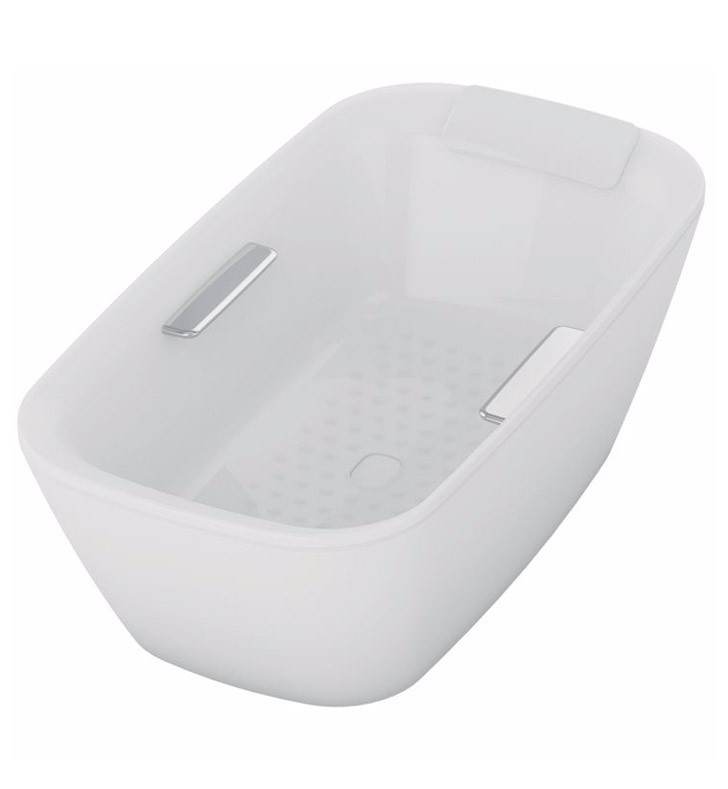 Perfectly sized for deep soaking while maintaining a compact form to maximize bathroom space