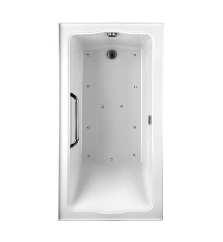 "The TOTO® Clayton® Air Bath™ Tile-in shall have a 3-sided molded integral flange tub standard and a luxuriously deep bathing well. The Air Bath Tile-in shall have a cast-acrylic construction that provides high durability with a slip-resistant surface. The Air Bath Tile-in shall have a 1hp ultra-quiet blower, a 300 watt heated air injection system and a final purge/ drying cycle to clean each air jet. The Air Bath Tile-in shall have an optional solid brass grab bar with various finishes, LED lighting and a multi-functional remote.