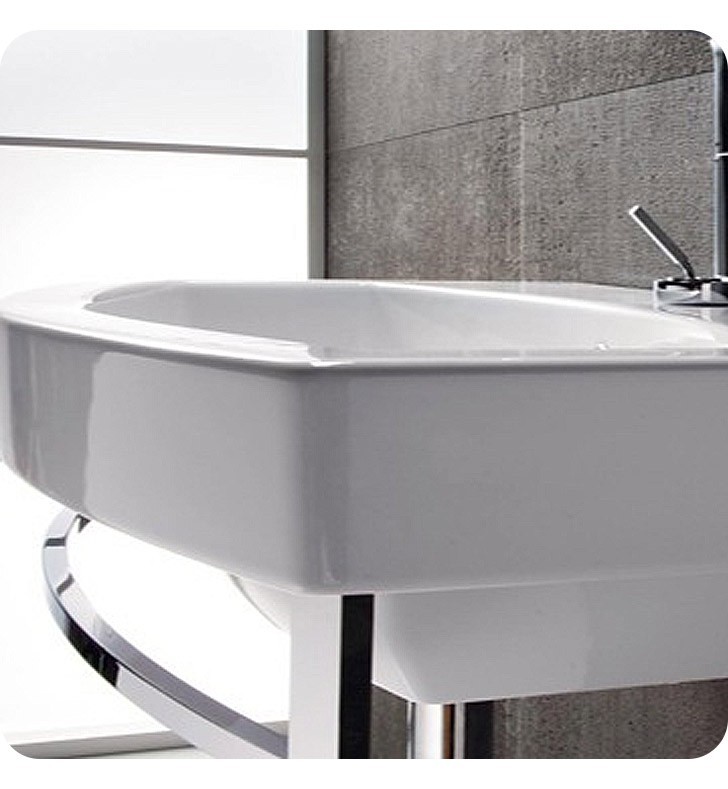 "GSI's Losagna no hole or one hole porcelain sink is a porcelain bathroom sink that compliments a contemporary style personal bath. Made in Italy by GSI, this vessel, wall mounted, or self-rimming bathroom sink is a quality solution for your high-end bathroom. Match all your other white bathroom fixtures with this designer-quality white porcelain sink, made in extremely high quality ceramic. Does not include towel bar shown in picture."