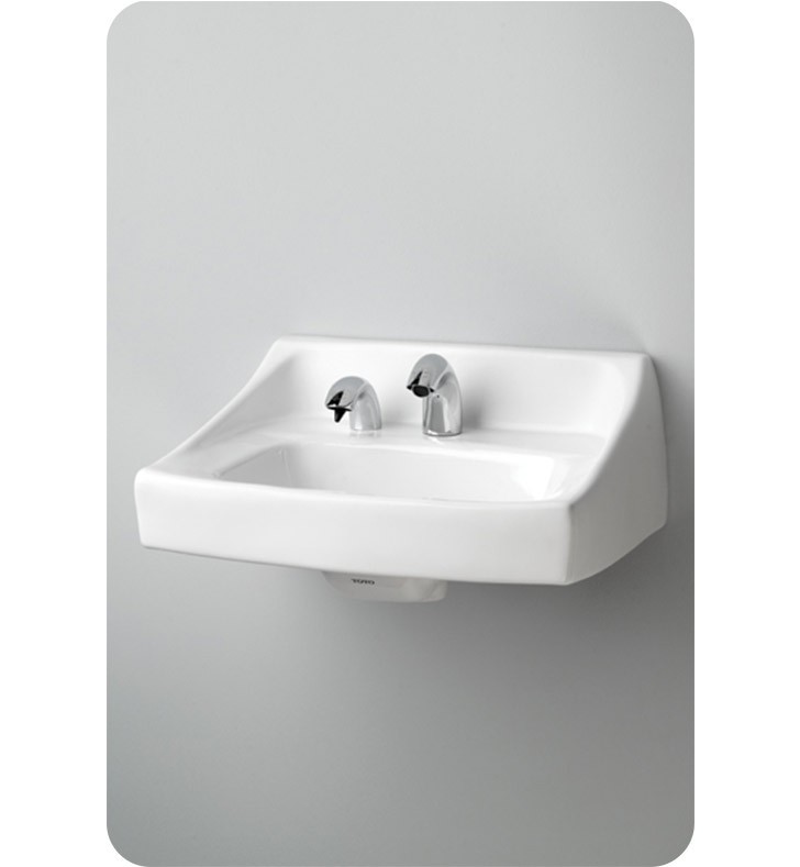 "Vitreous china wall-hung lavatory with single center faucet hole plus soap dispenser hole.