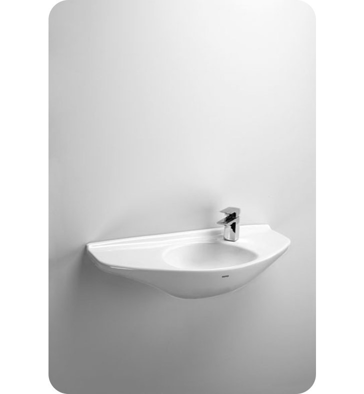 "Vitreous china, wall mounted lavatory. Single hole faucet mount.