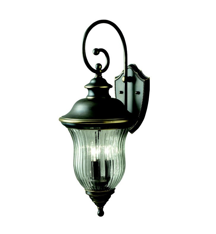 "To add a touch of European sophistication to your home's outdoor lighting, Kichler is proud to offer the Sausalito Collection. Made by the finest craftsmen in the industry, the Sausalito Collection features our Olde Bronze finish which gives each piece durability with old world charm. Clear ribbed optic glass completes the fixture, making your home's profile sparkle. The Sausalito wall lantern features an unmistakable 28" high, three light design. It uses 60-watt (max.) bulbs and is U.L. listed for wet locations."